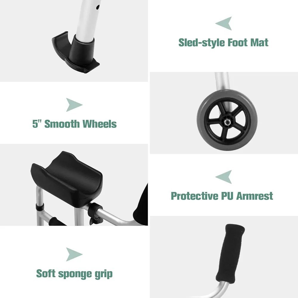 Comfortable Seat Cushion & 5″ Wheels: The standard walker adds soft seat cushion, which is ergonomically designed to offer comfortable resting position. In addition, 5″ front wheels are wear-resistant and shock-absorbing, making it suitable for a variety of indoor and outdoor roads. And sled-style foot mats are also durable and convenient for users to stand and walk.